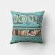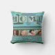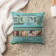 Een moderne blauwgroen groene kussen met een thema "Home is ..." met je eigen foto's en tekst en verse groene bladeren. Prachtig voor Moederdag of om foto's van uw favoriete huisdier toe te voegen...