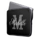 Persoonlijke monogram laptophoes | Zwart. Elegant typografisch ontwerp met monogrammed initiaal letter.
