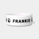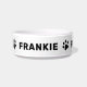 Deze unieke huisdier- of kattenbak is voorzien van hun naam in een moderne stijl van alle petten met een schattige pootdruk rond de kom. Een eenvoudig en schoon ontwerp voor je levendige familielid. De kleur van de zwarte tekst en de zwarte pootafdrukken kan worden gewijzigd.