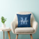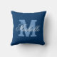 Gepersonaliseerde naam monogram marineschok blauw en wit werpen kussen. kussen, monogrammen, met naam en initiaal. achtergrondkleur. Het elegante ontwerp van de manuscripttypografische tekst. Kassy kerkdeeg voor sofa-stoelbank of bed.