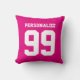 Persoonlijke neonroze sporttruc-nummer gooit kussens. achtergrondkleur. Stomme decor voor mannen en kinderen. Creëer uw eigen team met de naam van het schoolteam of met een citaat voor honkbal, basketbal, volleybal, ijshockey, softbal, voetbal, football speler, enz. Dubbelzijdig ontwerp met aangepaste tekst.