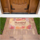Deze rustieke deurmat is versierd met een waterverf van bladeren in de prachtige kleuren van herfst en het woord "Dankbaar" in stijlvolle typografie. Gemakkelijk aan te passen. Originele Waterverf © Michele Davies.