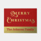 Welkom uw vakantiegasten met deze elegante kerst-welkomstdoormat in wijn rood en goud. Eenvoudig aan te passen met uw familienaam.