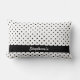 Gepersonaliseerde zwarte en witte polka puntpatroonlumbale kussen. Zwarte polka stippen op een witte achtergrond en een zwarte band met uw eigen naam.