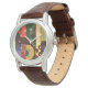 Perspective heren-, dames- en kinder-eWatch-horloges met witte cijfers. Perspective is een abstract ontwerp gemaakt door Anna M. Asbury en bestaat uit meerkleurige vormen op een bruine achtergrond.