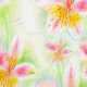 Peruaanse lelie waterverf Alstroemeria moderne waterverf wassen kunst bloemenpatroon in frisse pastel roze, groen, goudgeel en off witte tinten. Origineel patroon ontworpen en hand schilderij in waterverf door Sarah Trett voor www.mylittleeden.com