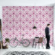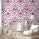 Perzik Paarse Witte Damask Bloemschil en stok Behang