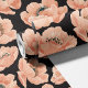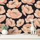Perzik papavers op zwarte elegante bloemen behang