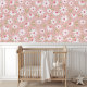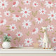 Perzik Pluche Roze Groen Wit Bloemen Art Patroon Behang