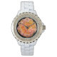Perzik roze geel rose ontwerp op zwarte achtergron horloge