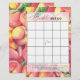 Waterverf fruit thema vrijgezellenfeest kaart met waterverf illustratie van perziken patroon en bladeren. Elegant kalligrafisch handschrift, dat perfect is voor lente-, zomer- of herfstbruiloften. Overeenkomende objecten beschikbaar.