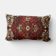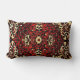 Perzisch tapijtuiterlijk in donkerrood en crème - antiek afbeelding werd bewerkt en aangebracht op deze lumbale kussen door Alma Wad.