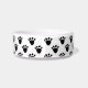 Deze aangepaste keramische hond of kat bowl voor je huisdier heeft het herhalen van zwarte pootdrukken afbeeldingen over de schaal. Het vormt een leuk zwart-wit geometrisch onderdrukkingspatroon.