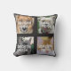 Pet foto collage with your custom dog or cat (or any foto). Black frame stays on top. Just select each foto and replace with your own, use plus or minus buttons to adjust sizing. Change the solid color on back side of pillow if you like. Makes a great gift to show a mini fotoalbum of your familiy of animal companions.