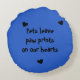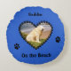 Dit prachtige kussen in een levendige blauwe kleur is een liefdevolle viering van je trouwe vriend. De tekst is volledig aanpasbaar, zodat u de suggesties voor uw eigen bericht, naam, data en ga zo maar door kunt wijzigen. De aanpasbare tekst op de achterkant is "Huisdieren laten pootafdrukken op ons hart achter".