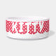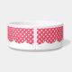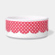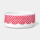 Pet naam op rood en wit poka puntpatroon. De naam kan worden gewijzigd of verwijderd.