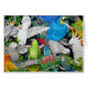 Origineel kunstontwerp van kleurrijke dierenparrots van kaketoes tot magen, kuipen, veulen, kakkertjes en nog veel meer van ontwerper Carolyn McFann van Two Spinnende Cats Studio.