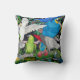 Origineel kunstontwerp van kleurrijke dierenparrots van kunstenaar Carolyn McFann van Two Spinnende Cats Studio, gedrukt op beide zijden van een Amerikaanse kwaliteitskussens van Mojo voor papegaaien.