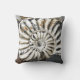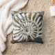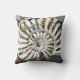 Een elegante natuur inspireerde kussen in neutrale kleuren met een spiraalvormig nautilus fossiel. Prachtig voor een strandhuis of kustverblijf, of ook als je op zoek bent naar een industrieel design interior.