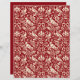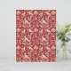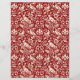 Papier in een William Morris, Art Nouveau behangontwerp van fazanten en hazen gezet tussen bladeren, wijnstokken en bloemen, in crème / winter wit op een diepe Chinese rode achtergrond