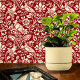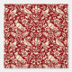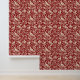 Behang in een William Morris, Art Nouveau patroon van fazanten en hazen tussen bladeren, wijnstokken en bloemen - crème / winter wit op een diep Chinese rode achtergrond