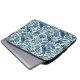 Neopreen sleeve in een William Morris, Art Nouveau wallpaper design of fazants and hares set by bladeren, wijnstokken en bloemen - dark indigoblauw / marine blue on a white background