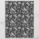 Papier in een William Morris, Art Nouveau behangontwerp van fazanten en hazen gezet tussen bladeren, wijnstokken en bloemen in wit op een zwarte achtergrond