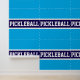 Dit sportieve ontwerp is voorzien van atletische PICKLEBALL-tekst in een brede horizontale gedurfde marinestreep gemarkeerd met witte strepen tegen een azuurblauwe achtergrond. De kleuren en tekst in dit ontwerp kunnen worden gepersonaliseerd.