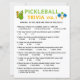 ⭐️ Wat het is: Pickleball Trivia Game is een partijspel. Hoeveel weet je over pickleball? Strijd met alle vrienden en familie check out wie een hogere score kan krijgen. Pickleball Trivia Game's antwoord sleutel: 1. B, 2. B, 3. C, 4. B, 5. C, 6. C, 7. B, 8. A, 9. A, 10. B, 11. B, 12. A, 13. A, 14. A, 15. B, 16. C, 17. B, 18. A.