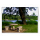 Deze foto is genomen in juli 2011, in Lion's Park in Cold Spring, MN. Het was een mooie zonnige dag en deze tafel onder een statelijk oude boom aan de oevers van de Sauk-rivier zag er zo uitnodigend uit. Ik dacht dat we daar een korte ontsnapping zouden moeten maken uit de te drukke wereld. Een vreedzame picknick respite.