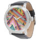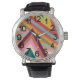 Dit mannen horloge heeft een 1970s retro ontwerp is gemaakt van gelaagd ondersteboven versus gelaagd op drie plaatsen allemaal in retro kleuren.