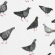 Duiven marcheren rond op een witte achtergrond. Originele kunst van Nic Squirrell.