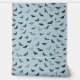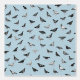 Duiven marcheren rond op een lichtblauwe groene achtergrond. Originele kunst van Nic Squirrell.