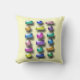 Buttonnen in verschillende vormen en kleuren. Pas de achtergrondkleur aan om uw decor te verbeteren (geel en lavender worden hier aan weerszijden getoond). Driedimensionale ronde en rechthoekige "knopvormen" zijn in drie rijen (één zijde horizontaal, de andere verticaal).