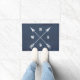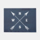 Compass-illustratie met pijlen en noord-, oost-, zuid- en westversiering op blauwe achtergrond