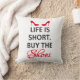 Pillow, het leven is kort, koop de schoenen. illustratie van de mode, tekstontwerp, woordkunst, decoratie thuis voor schoenliefhebbers, schoenverslaafden, cadeau voor haar