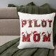 Pilot Mom in Christmas Letters styled with holiday Lights, Ornaments, Santa hat and Rudolph antlers in a red and black plaid background. Funny Throw Pillow, perfect for a holiday present or decor. Browse our matching products!