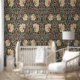 Breng een vleugje klassieke verfijning naar uw huis met dit prachtige behang, geïnspireerd door de ingewikkelde design van William Morris. Het elegante patroon heeft majestueuze pimpernel bloemen en delicate bloesems verweven met weelderige groene bladeren en wijnstokken. Het kleurenpalet bevat zachte pastelgroenten, warme abrikozen en gedempte gouden tinten, allemaal prachtig gecontrasteerd tegen een diepe houtskoolachtergrond. Dit prachtige behang is perfect voor het toevoegen van een gevoel van tijdloze elegantie en natuurlijke schoonheid aan elke kamer, naadloos mengen traditionele charme met moderne stijl.