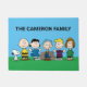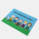 Kijk naar Snoopy, Charlie Brown, Lucy, Pigpen, Schroeder en Peppermint Patty in een rij.