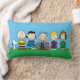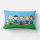 Kijk naar Snoopy, Charlie Brown, Lucy, Pigpen, Schroeder en Peppermint Patty in een rij.