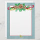 Een briefpapier om uw vakantiebrieven te schrijven, versierd met dennenappels, groenblijvende takken, bessen en een bordeauxrood lint met een grijze rand beschilderd met waterverf.