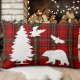 Een elegant ontwerp voor de winter met rode, zwarte, groene tartan achtergrond en bosdieren en bomen!