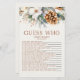 Dit is een Winter Pine Tree Floral Guess Who! Baby shower spel. *Raad eens wie? - Er zijn 15 vragen. De gasten zullen kiezen of de vraag van toepassing is op de Moeder of Vader. Wie de meeste antwoorden krijgt, wint!