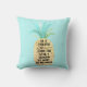 Heldere en leuke omkeerbare ananasworp kussen. Deze decoratieve kussen hebben een lichte blauwgroen achtergrond met een ananas en het citaat "Wees een ananasappel - Standaard lang, Draag een kroon en wees zoet aan de binnenkant" aan de voorkant en een veelvoud van ananassen aan de achterkant.