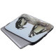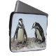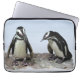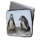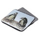 Deze laptophoes is voorzien van twee schattige Afrikaanse pinguïns die op een rotsblok staan. Het zijn aquatische, flipte vogels wier vleugels flippers zijn geworden. Elk heeft een zwarte streep en zwarte vlekken op de borst. Het patroon van vlekken is uniek voor elke pinguïn, net als menselijke vingerafdrukken. Ze hebben roze klieren boven hun ogen en roze en zwarte voeten.