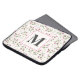 A laptop sleeve with your custom monogram initial inside an eggshell white colored frame with a pink border. Initial is written in a bold font. The backdrop is a pattern of hand drawn pink wildflowers with long green stems and leaves on an eggshell white colored backdrop. Pink circles and sprigs also decorate the design. Whimsical and pretty floral design.