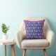 Een Pillow of Cushion met een patroon van roze anemonen op een donkerblauwe achtergrond, en een diep roze rand; van een digitaal ontwerp door Judy Adamson.
