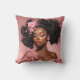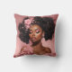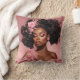 Accentueer je ruimte met dit kussen, gesierd door een zwart vrouwenportret met weelderige krullen en roze bloemenversieringen.