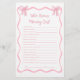 Geniet van het ultieme baby shower spel! Dit gepersonaliseerde 'Who Knows Mommy Best' spel is ideaal voor uw roze boog baby shower thema. Het is een leuke, interactieve manier voor gasten om samen te genieten van gedenkwaardige momenten. Ideaal voor coquette baby shower thema's, deze boog baby shower spel voegt charme aan elke viering. Op zoek naar baby shower spel ideeën of roze baby shower ideeën? Deze boeg party favoriet is een must-have voor een stijlvolle, onvergetelijke dag!
