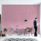 Een charmant en speels patroon met rijen eenvoudige, met vet omzoomde roze bogen tegen een zachte roze achtergrond. De bogen zijn gelijkmatig verdeeld en in zwart geschetst, waardoor een speelse en stijlvolle look ontstaat. Dit patroon heeft een zoete, vrouwelijke sfeer, versterkt door het monochromatische roze palet en repetitief ontwerp.